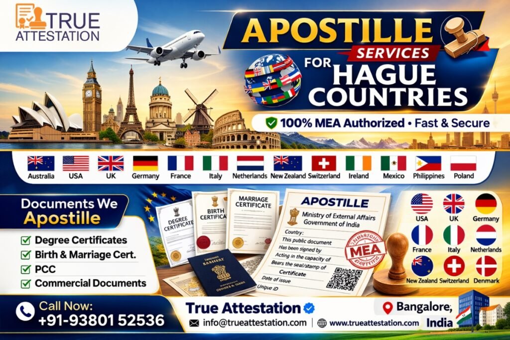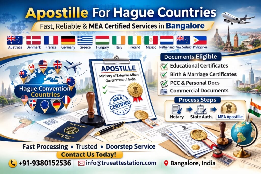 True Attestation Bangalore provides reliable, fast, and secure Apostille services for all Hague countries.