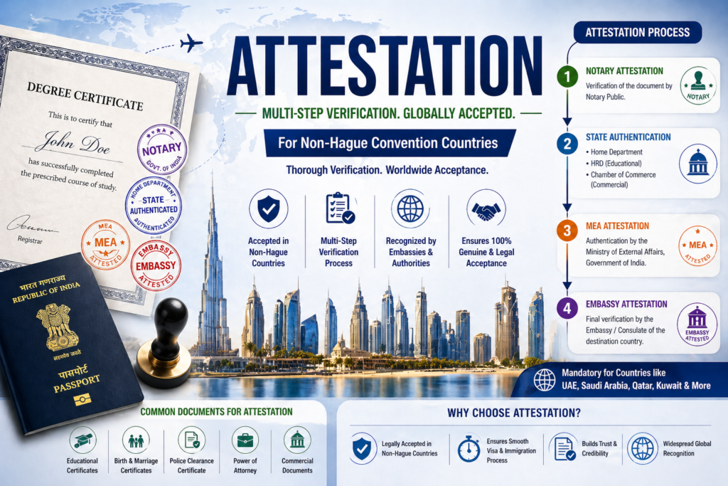 If you are moving to countries like United Arab Emirates or Qatar for work, attestation is mandatory. Employers and immigration authorities require fully attested documents.